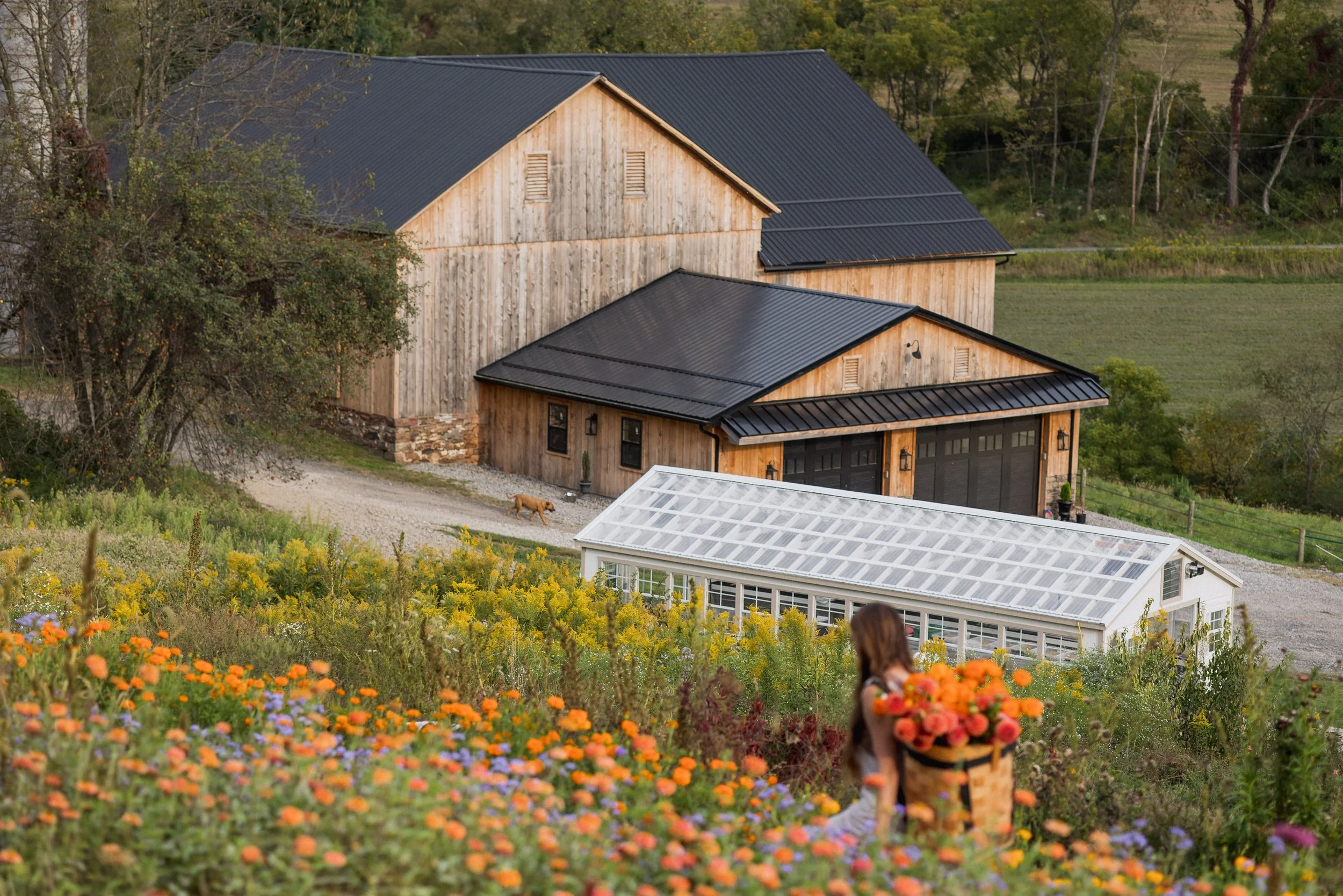 Long Lane Farm is a specialty cut flower farm located in the rolling hills of Pennsylvania (just outside of Williamsport in Lycoming County) owned and operated by Emily Linn. We grow cut flowers seasonally for floral designers, discerning couples, and our flower loving community. We offer an on-farm self-serve flower cart, two CSAs (similar to a bouquet subscription | summer and fall), bouquets at Don Waltman’s Market House in Loyalsock, curated cut flower seedling collections, lush evergreen wreaths, hands-on workshops & garden-inspired wedding designs. Emily and her husband Collin purchased the 22 acre farm in 2017 and started the flower farm in 2018. The original farmhouse was built in 1857 with the barn following shortly thereafter. As far as we know, the name Long Lane Farm is original, so we stuck with it! At one time, it served as a dairy farm and the surrounding fields have been farmed for corn, soybeans, and mixed grass hay throughout its century and a half existence. We are bringing a whole new world of farming to this old ground: specialty cut flowers!